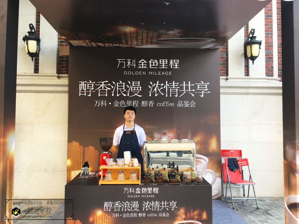 2018年7月28、29號,萬科金色里程醇香咖啡品鑒會得以成功舉行,佛山展翅咖啡調酒西點培訓學校的咖啡師學員謝華聰參與了本次活動。人山人海的活動現場,謝華聰心定神閑地展示了熟練非常的咖啡拉花技巧,咖啡無論是品質,還是味道,都受到現場嘉賓的一致好評。作為一名優秀的咖啡師,在最短的時間內走一遍需經過的工序,并確保零錯誤,高效率,保證咖啡在某種特定的溫度中被呈現出來,遞到顧客手中,咖啡味道既佳,拉花圖案更顯雅致,有時,一個完美的“心形”就足夠看出展翅學員技能水平經過千錘百煉,已臻爐火純青!