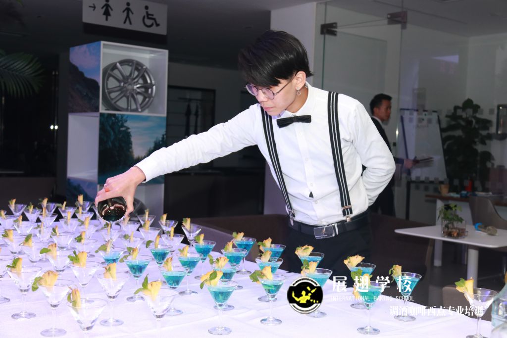 當天慶豐捷豹路虎4S店8周年慶活動由佛山展翅調酒咖啡西點培訓學校提供了專業花式調酒節目及雞尾酒。當天由調酒學員:陳仁繼、柯玉龍負責調制雞尾酒。在調制雞尾酒過程中同學們需要不斷的實踐及學習才能完善自己的學業。除了學習理論知識及實操外,做一名專業調酒師來說,需要不斷的實踐、比如酒吧實踐、各種酒會、答謝會活動實踐和學習才能更加完善自己。今天小編描述到這。接下來我們回顧一下當天慶豐捷豹路虎4S店8周年慶活動及學員調酒實踐的花絮: