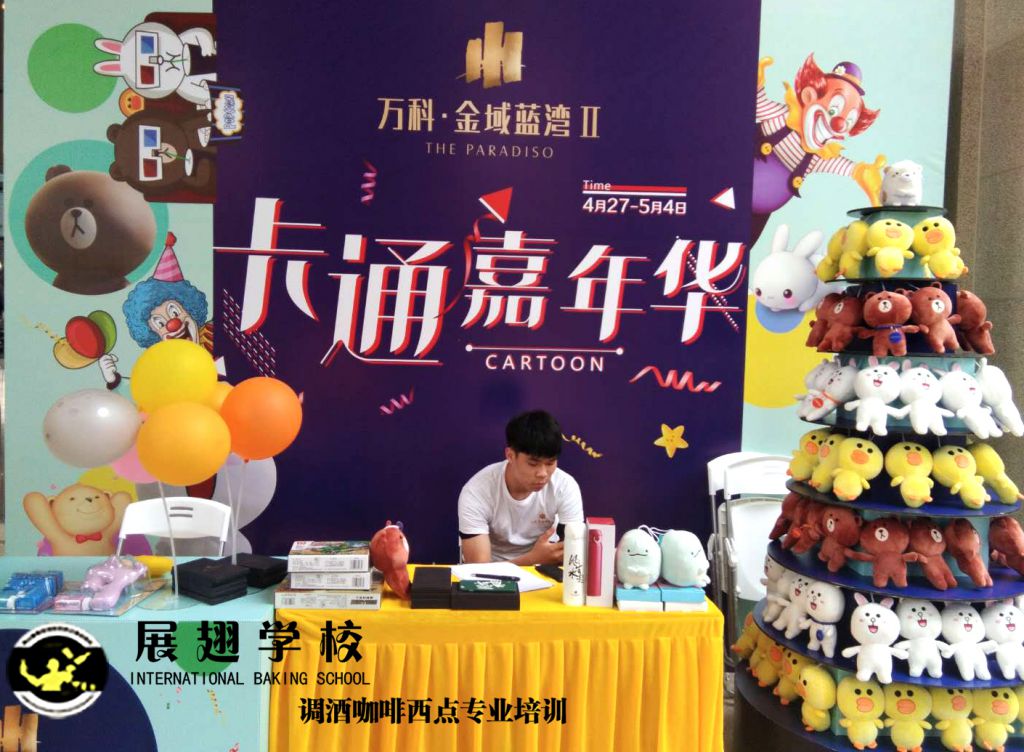 2019年4月27日,萬科.金域藍(lán)灣卡通嘉年華,展翅調(diào)酒咖啡西點(diǎn)培訓(xùn)學(xué)校的咖啡師被邀請(qǐng)到現(xiàn)場(chǎng)咖啡拉花表演