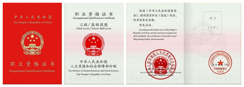 國家職業(yè)資格三級(高級樣板證書)