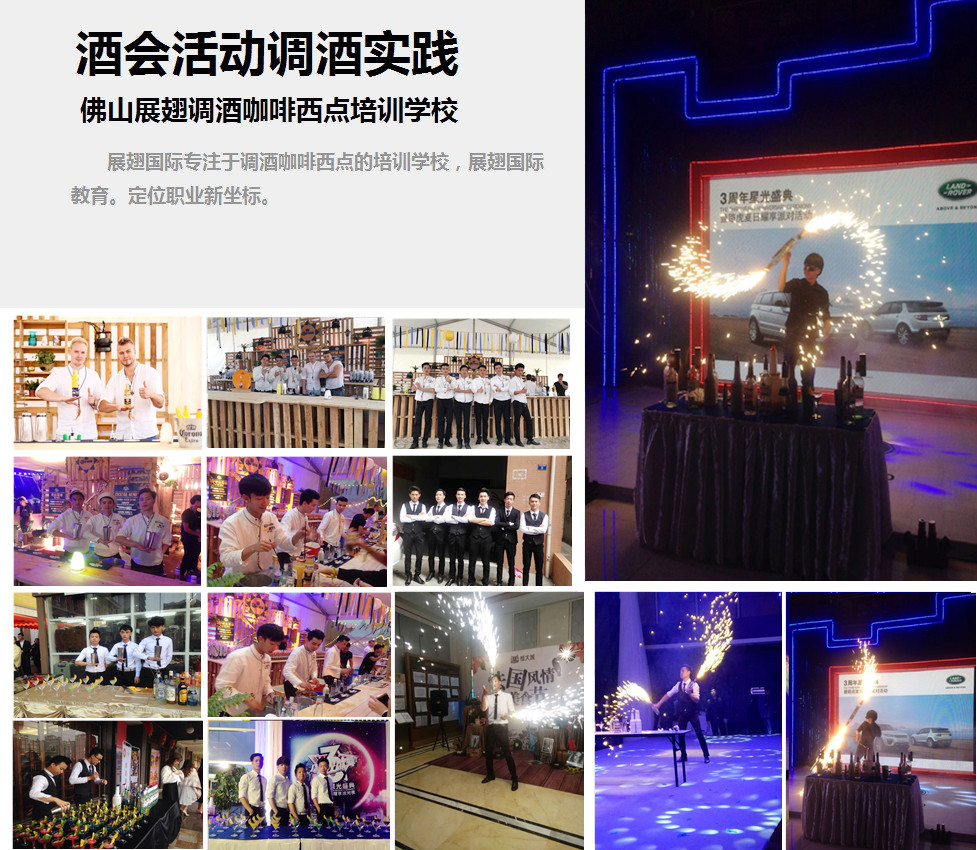 | 《酒水牌制作》 | 《1-5瓶動作、1-5瓶火瓶動作、火焰杯塔、噴火、吞火》 | 《酒吧工作花式、各種瓶廳動作》 |